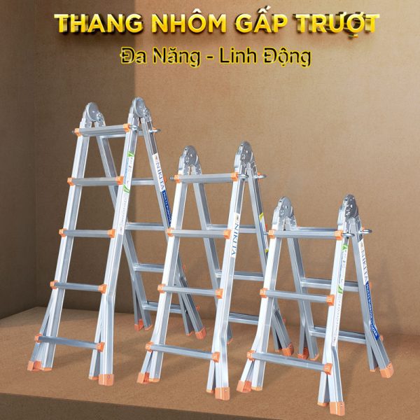 Thang nhôm chữ A đa năng: có thể gấp, rút hoặc duỗi thẳng
