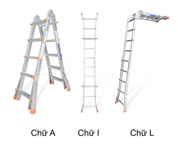 Thang nhôm A đa năng có thể sử dụng hình chữ A, chữ I, chữ L, … tùy thuộc vào yêu cầu sử dụng